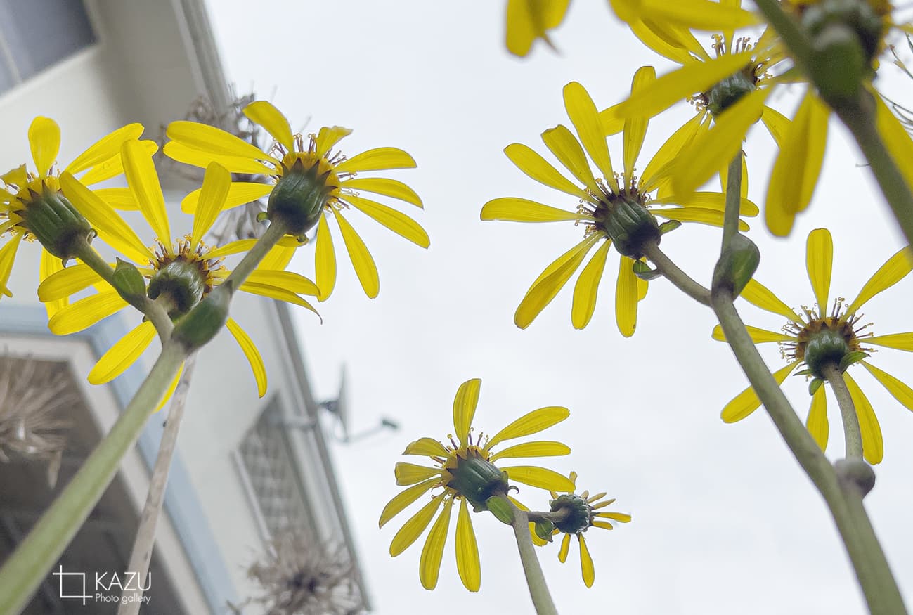 充電電池の予備を忘れたのでライブビュー撮影はやめてファインダーで撮影です、天気もどんどん曇ってきたので早々に切り上げてチューリップの土の調整です、庭のツワブキが綺麗なので撮ってみました。