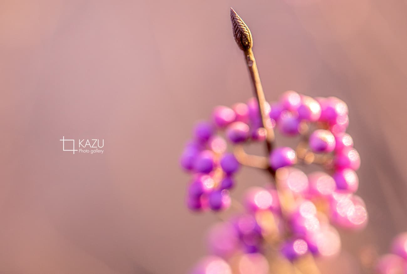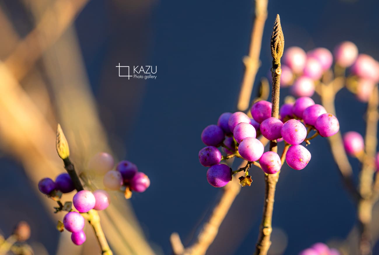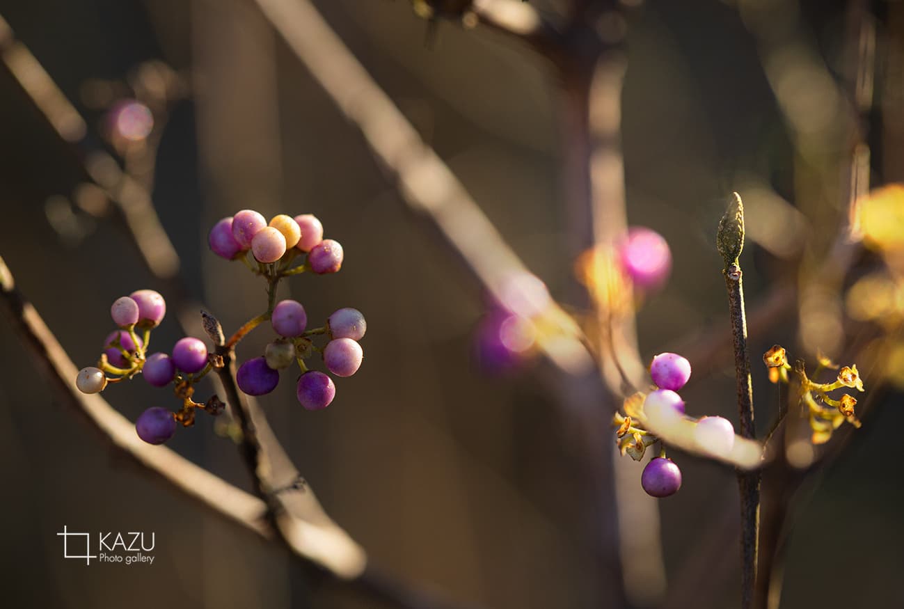 逆光に照らされて紫色の綺麗な実がいっぱいがなってました、トサムラサキでしょうか、初めて見ましたなんだかわかりません