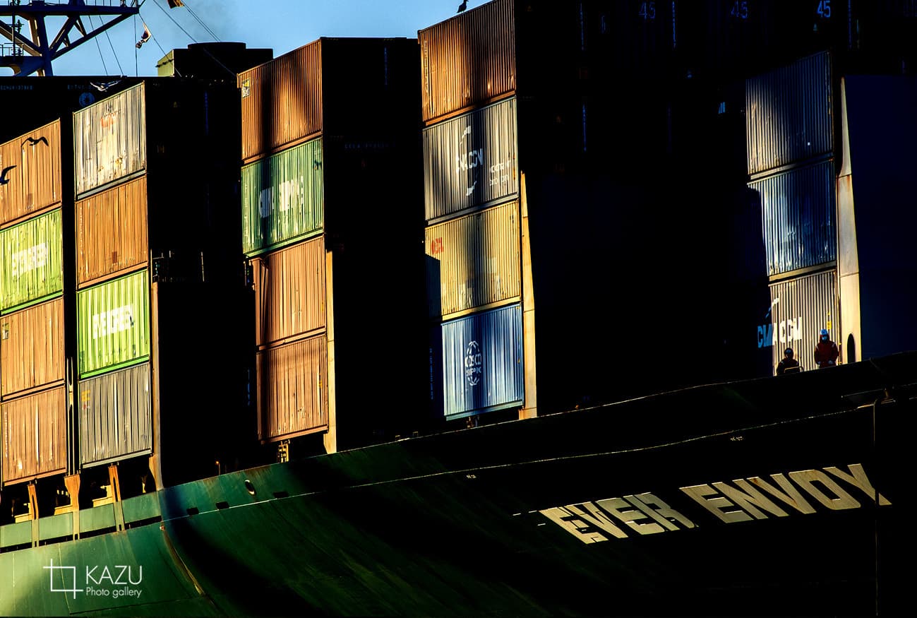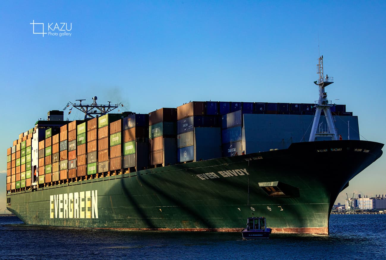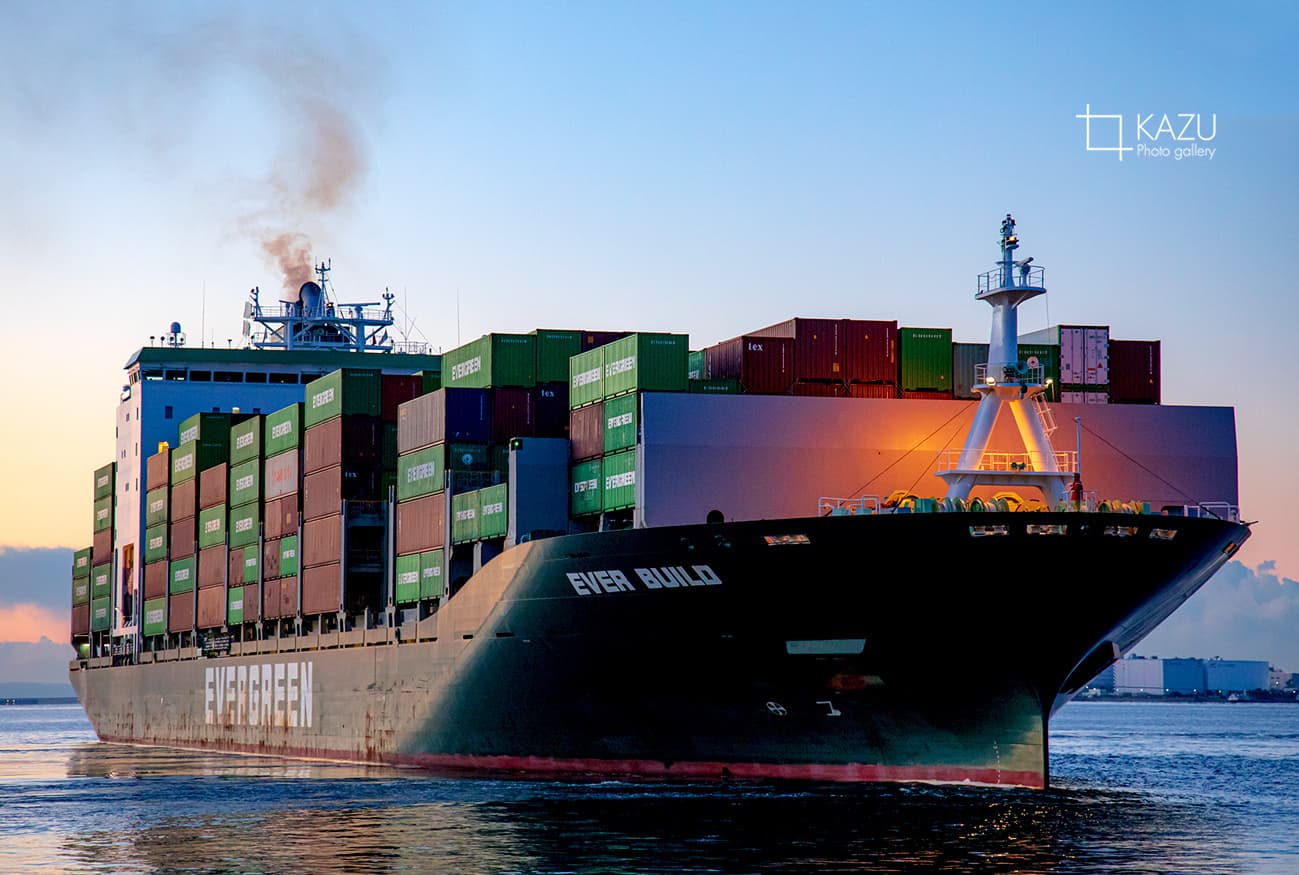 EVER ENVOYフルコンテナ船76,067.00Mが早朝にやってくるので青海まで行ったみました、着いてみるとコンテナ船が停泊してるので早くきたのかと近づいてみると別の船でした、これから出航する船でした EVER BUILDフルコンテナ船32,691.00です