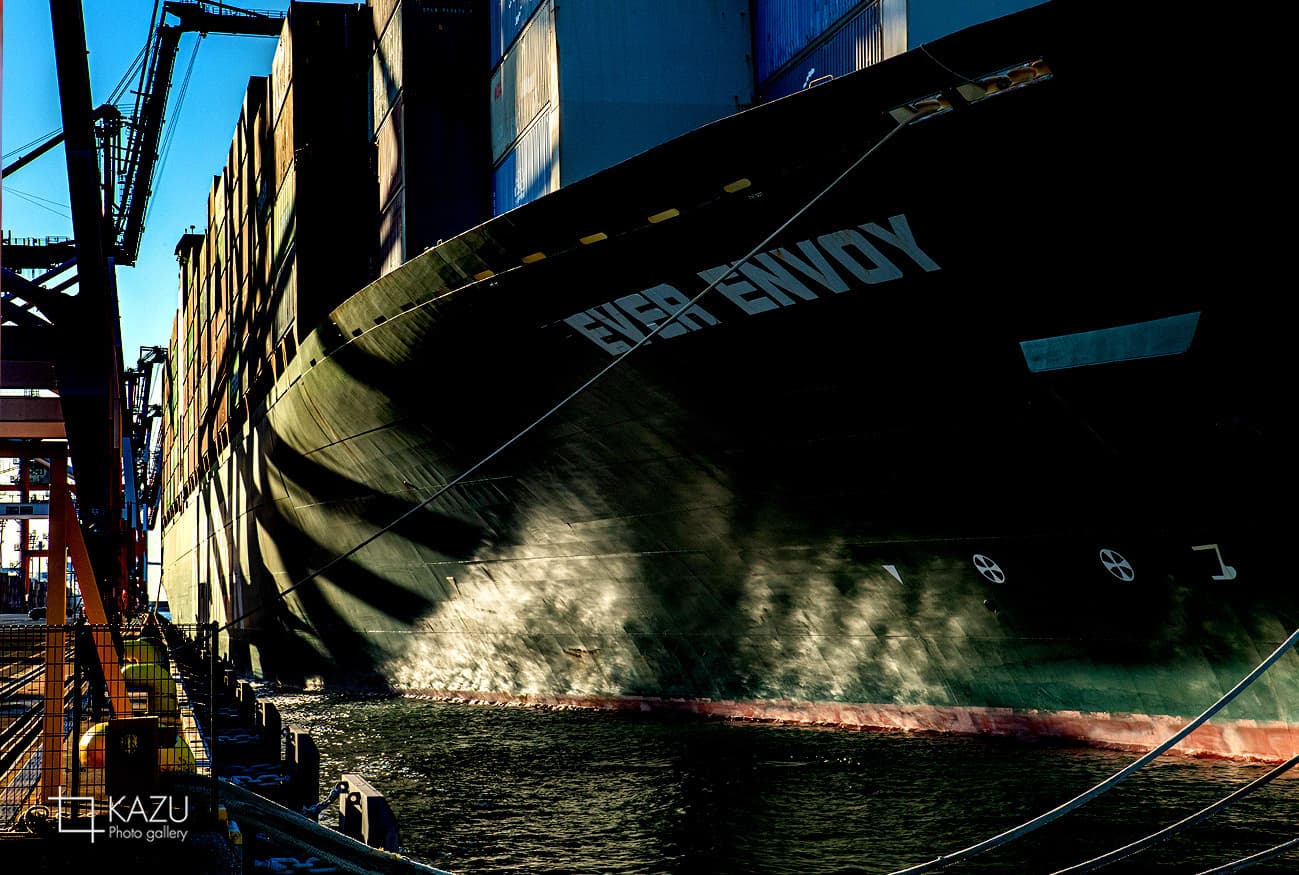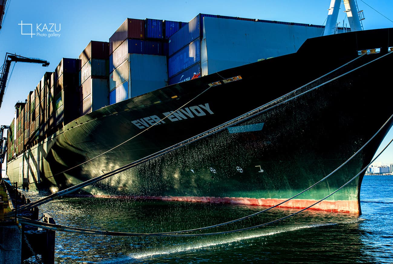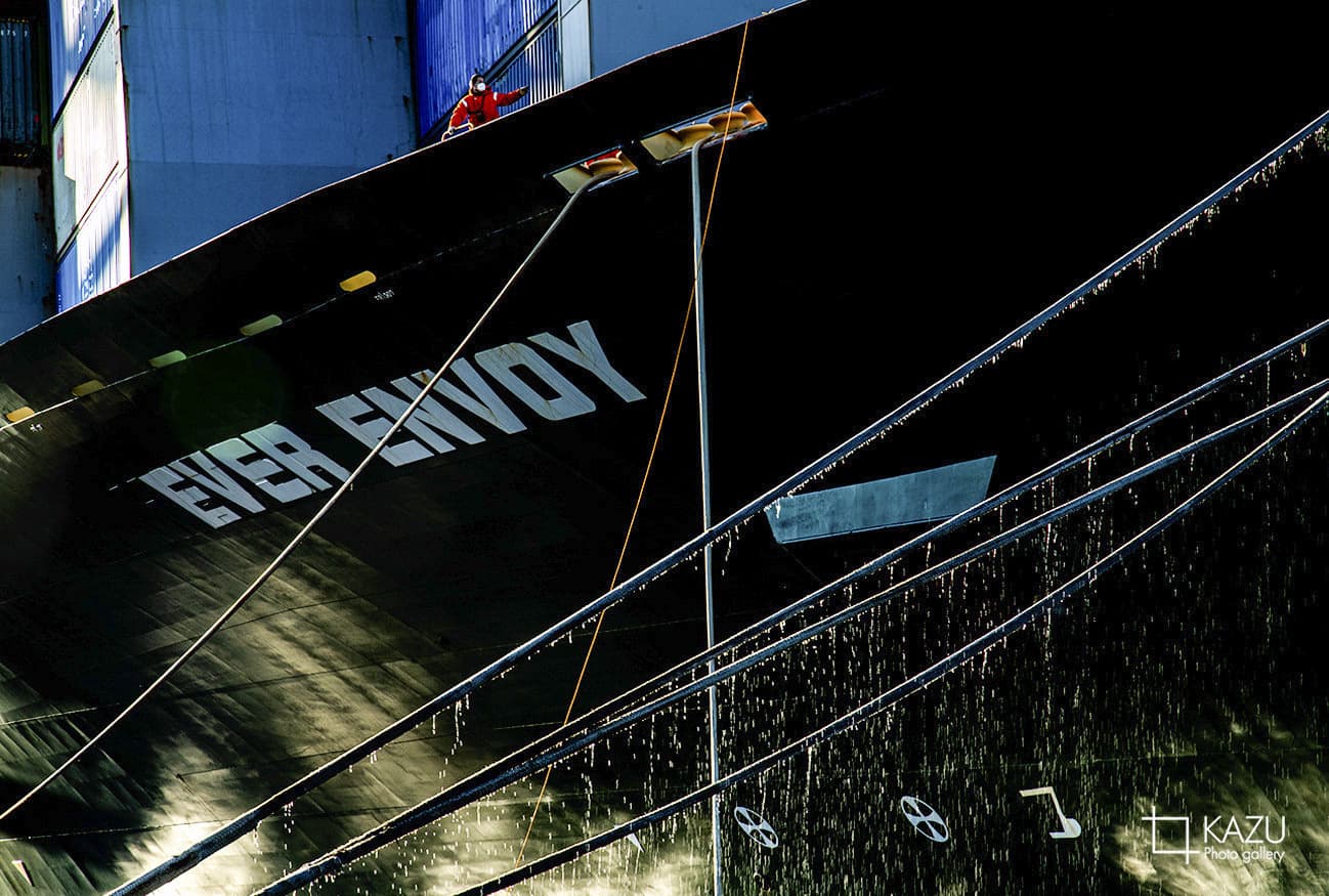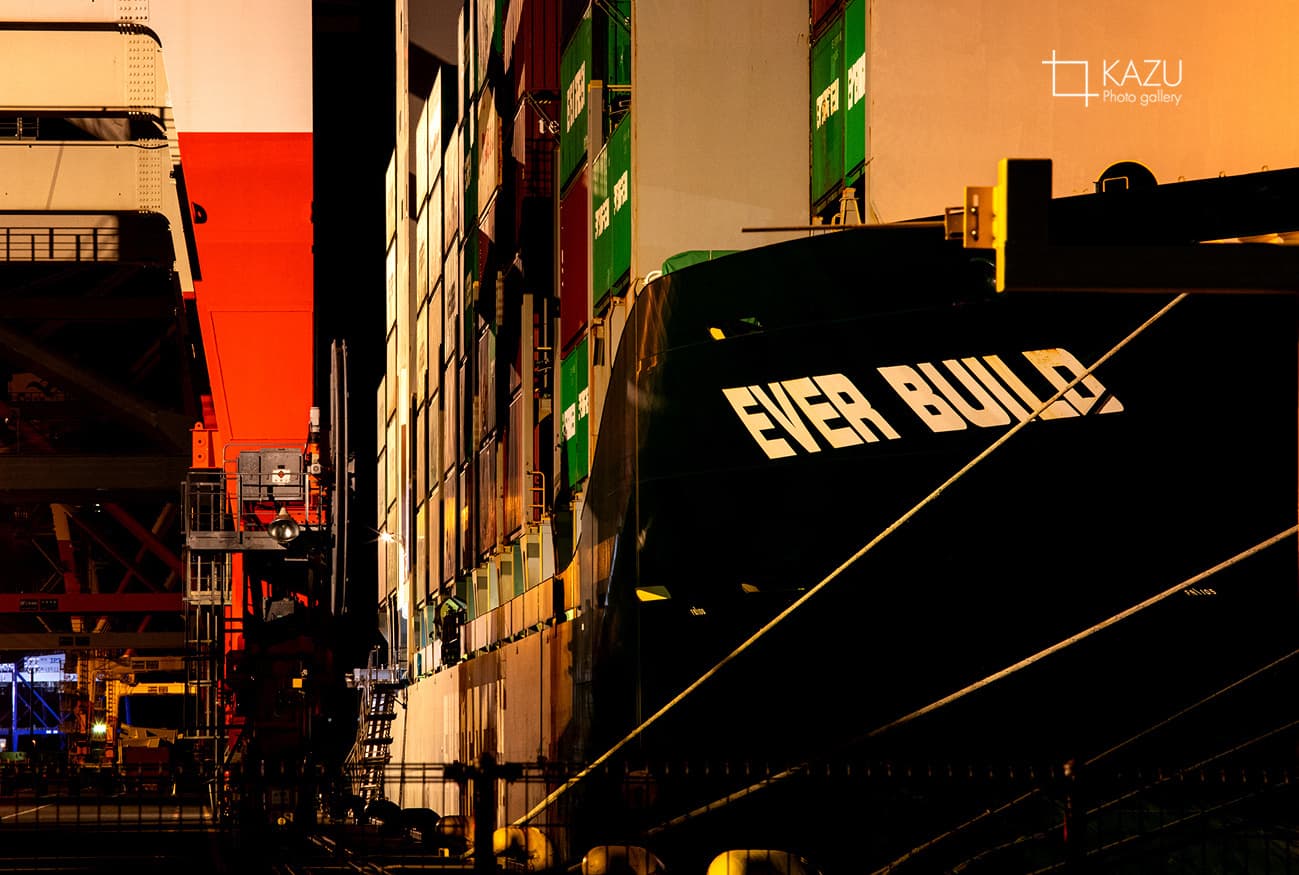 EVER ENVOYフルコンテナ船76,067.00Mが早朝にやってくるので青海まで行ったみました、着いてみるとコンテナ船が停泊してるので早くきたのかと近づいてみると別の船でした、これから出航する船でした EVER BUILDフルコンテナ船32,691.00です