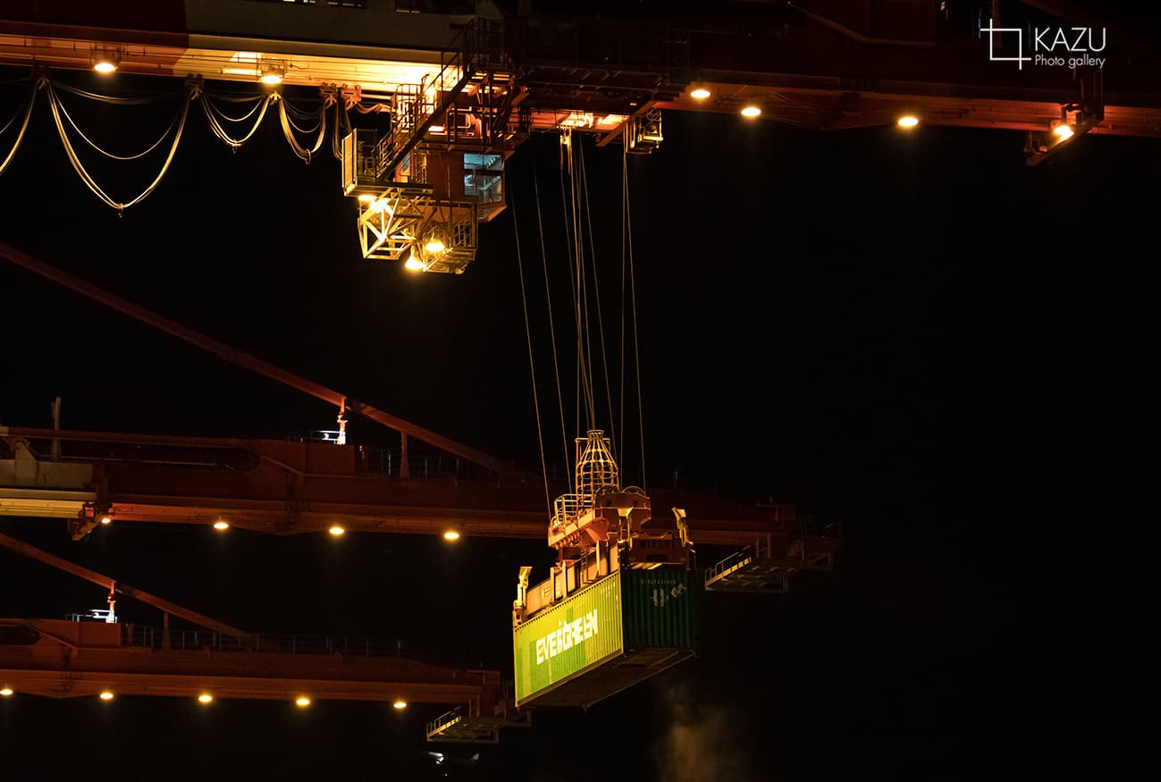 青海のトランステナ、こちらのクレーンもガントリークレーンに負けず劣らず見ていて面白すぎます、ここでトラックの積んで船の脇に行ってガントリークレーンで船に積み込みます