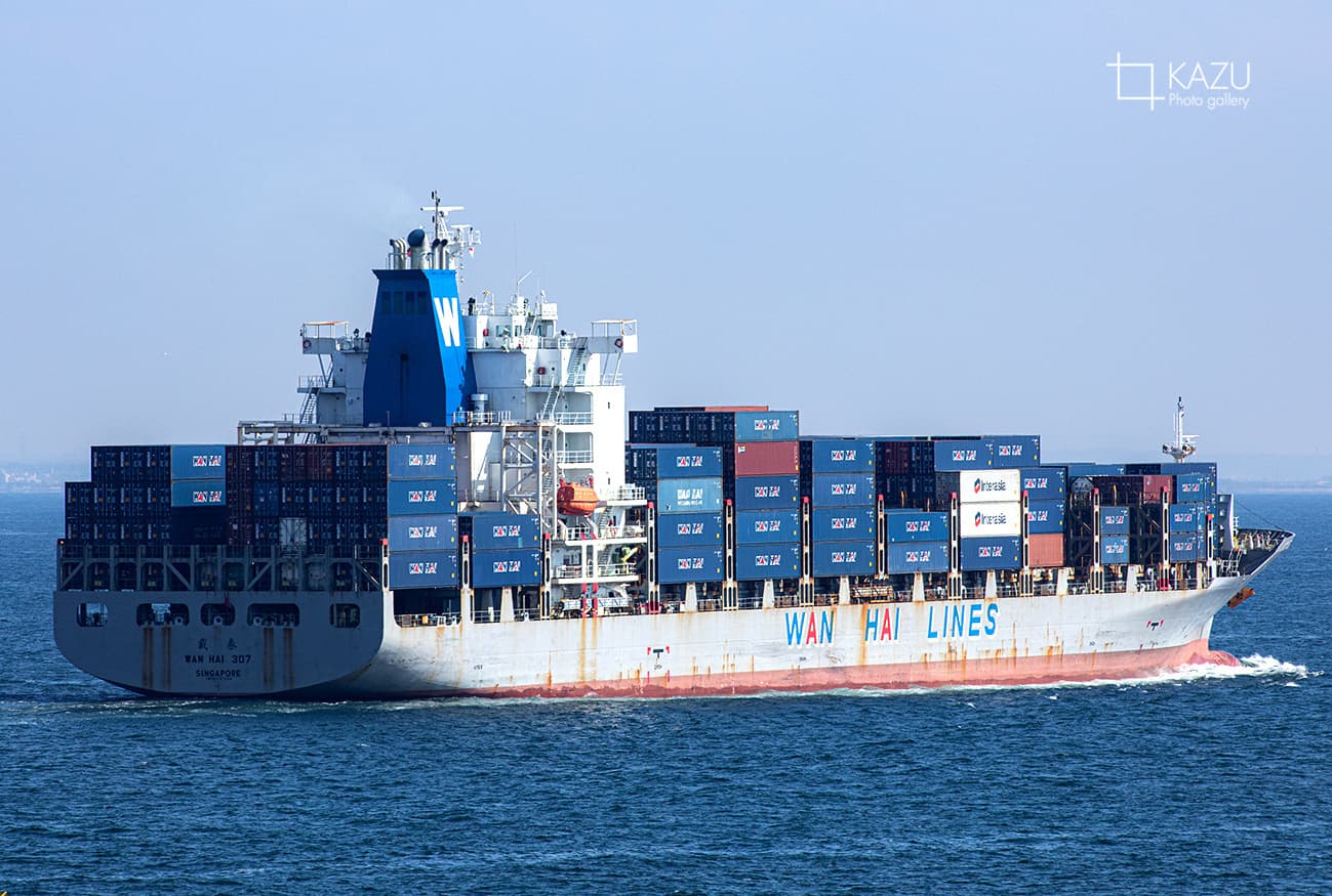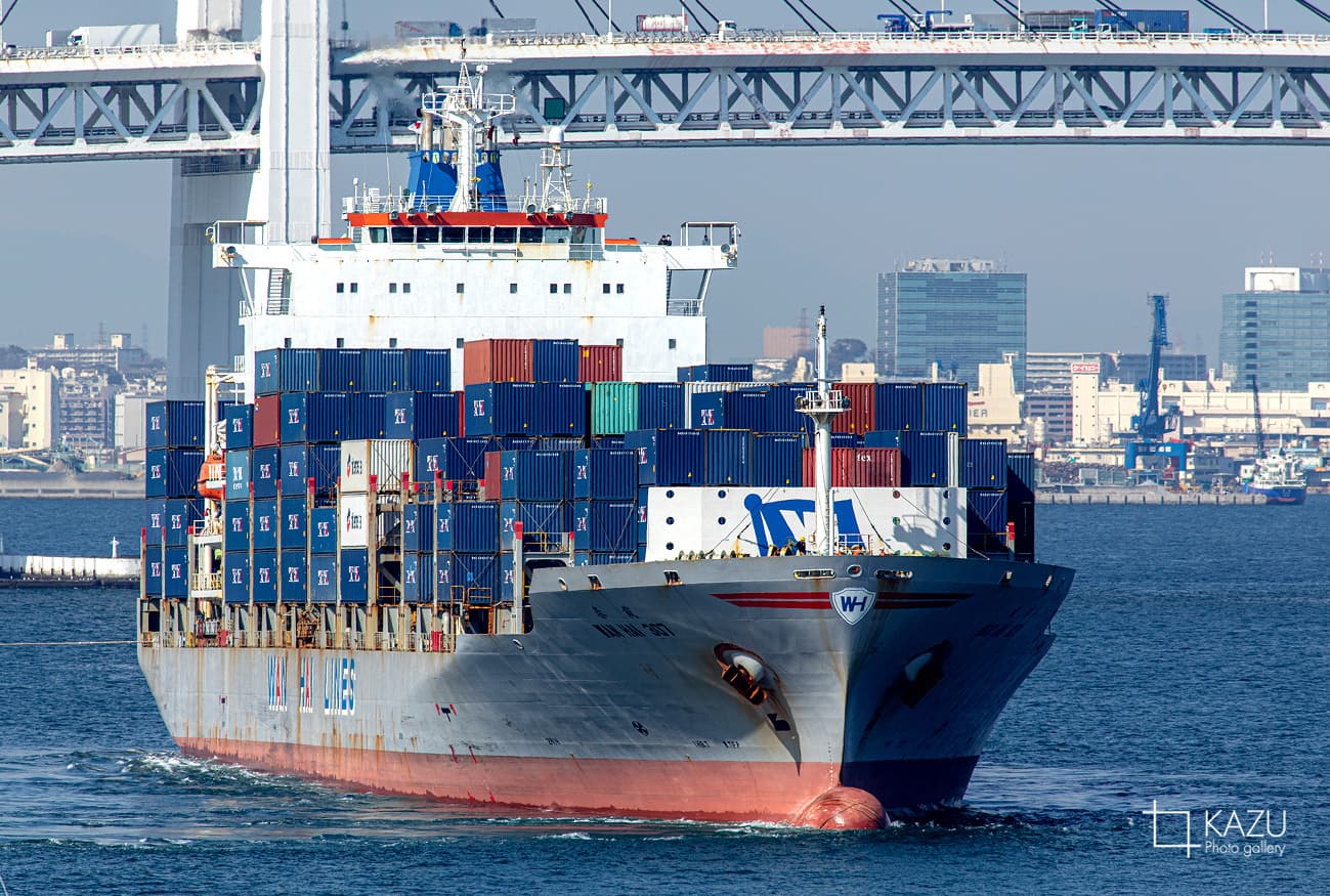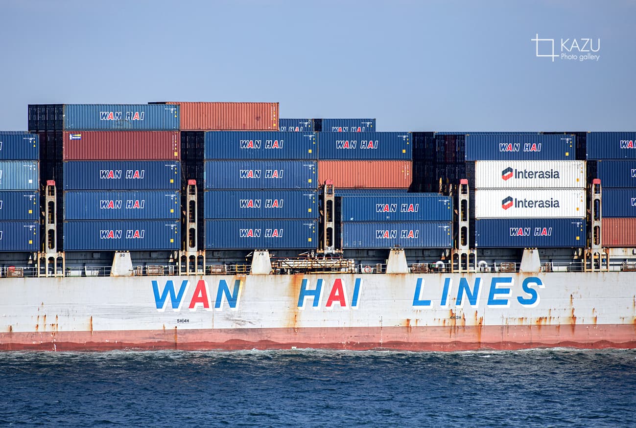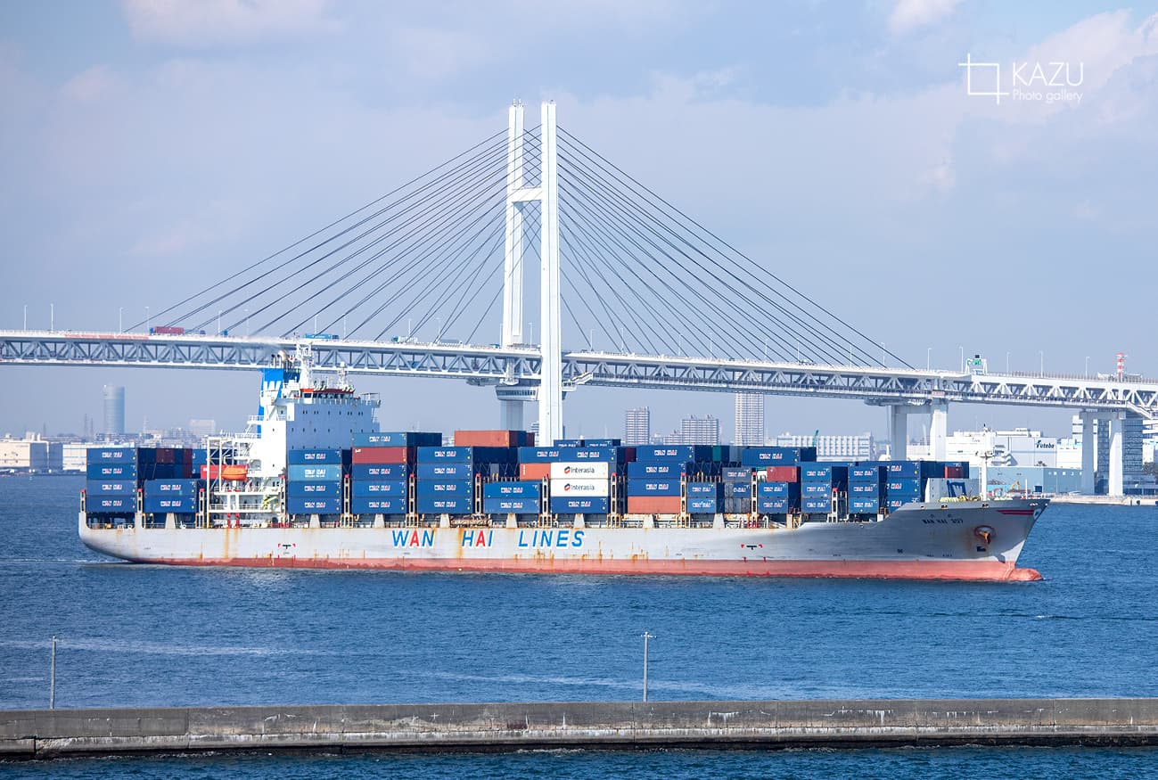 面白い事ないな〜と海を眺めていたら本牧埠頭B-C突堤WAN HAI 30,250tが動き始めました