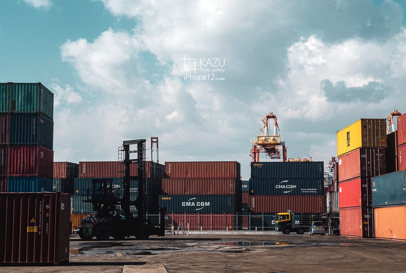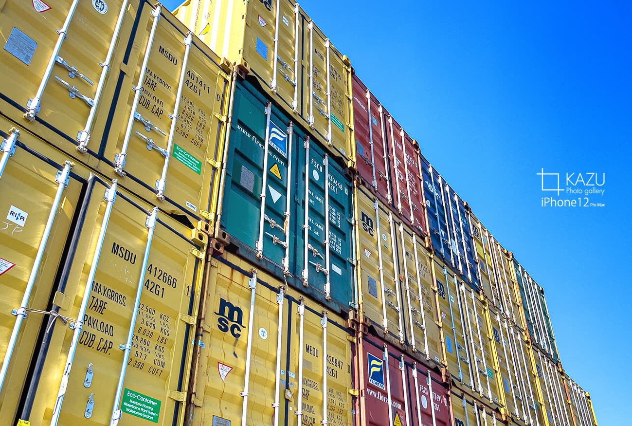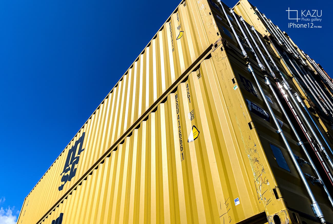 天気が良くコンテナが綺麗なので車を止めてスマフォで柵の上に手を伸ばして撮影、綺麗です