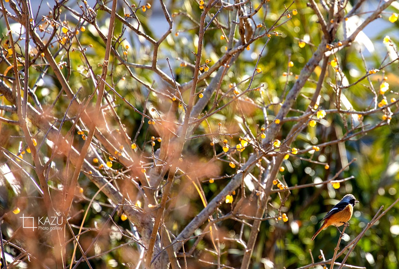 ヤマガラ(訂正.ジョウビタキ)がうろついていたのでそっと追ってみました、人が多いので落ち着かず飛んで行ってしまいました