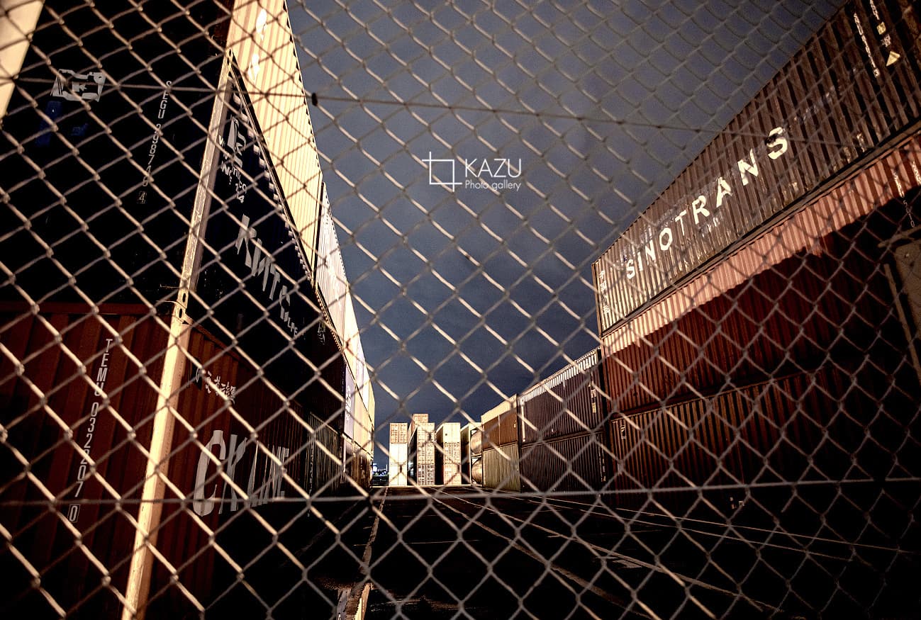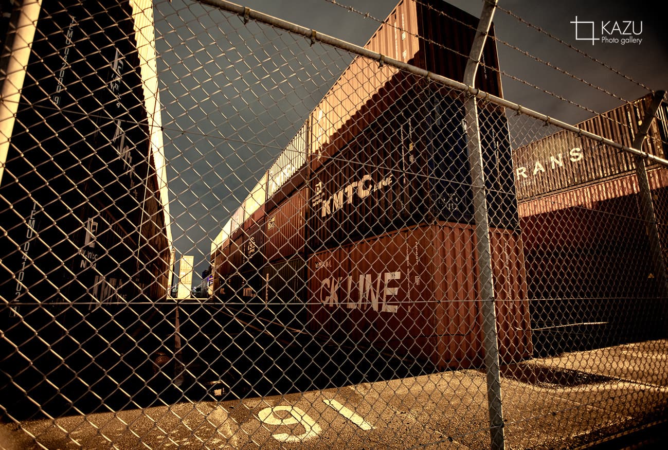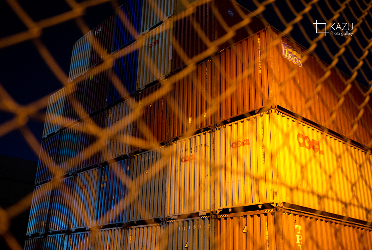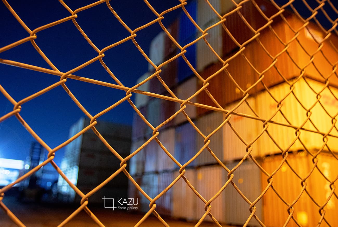 網が邪魔なのでわざと網を入れて撮ってみました網とコンテナの色の対比が強いので少し色を落として現像、良い感じです