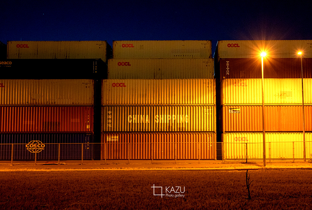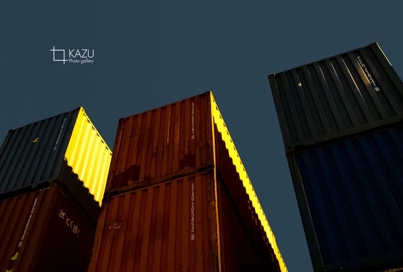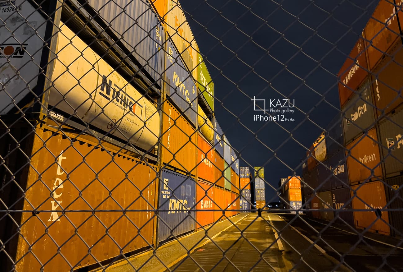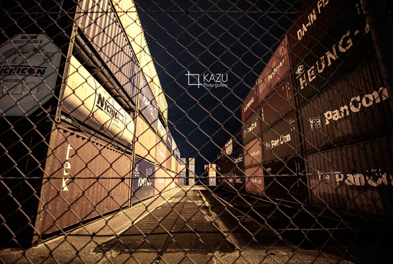 網が邪魔なのでわざと網を入れて撮ってみました網とコンテナの色の対比が強いので少し色を落として現像、良い感じです