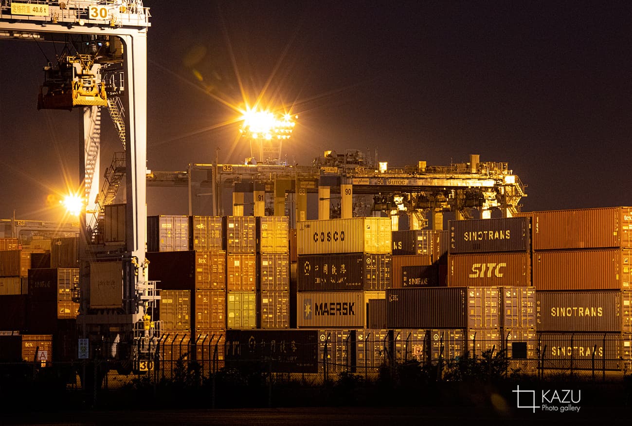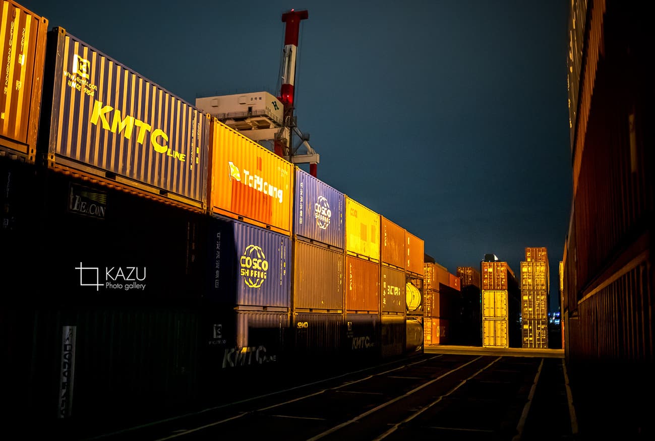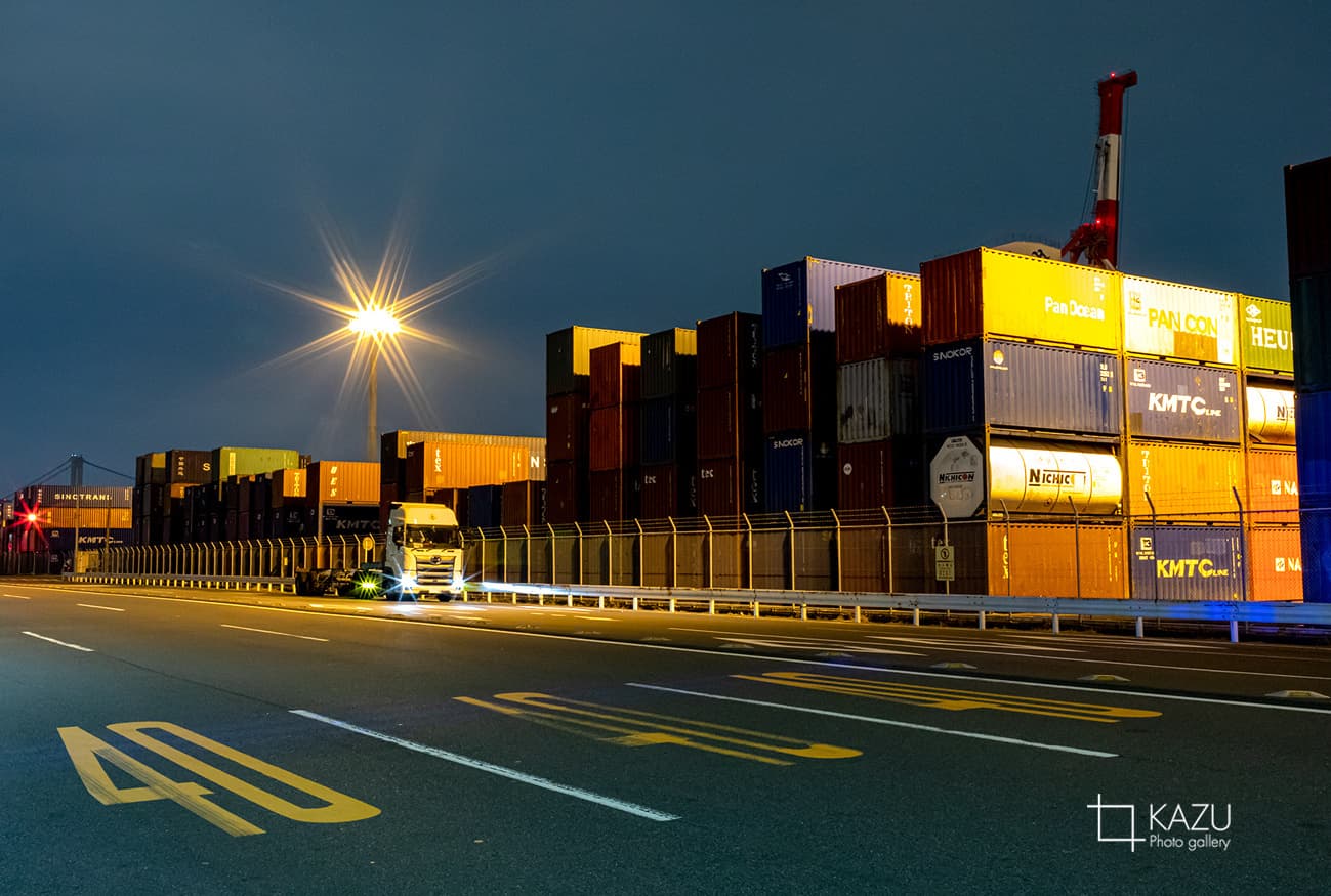 次は令和島、先日訪れた反対側、ガントリークレンには近づけそうにないので積み上げられたコンテナを撮ってみました、カッコ良いですなんでこんな四角い箱に魅かれてしまうのはなんなのでしょうか