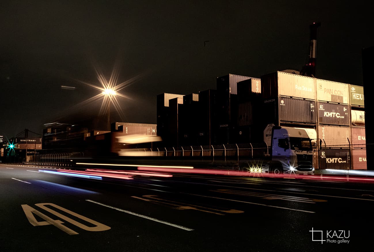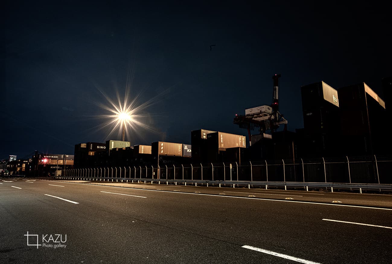 昨日の続き人影もなく広い道路(片道3車線)がなんとも良い感じです、日中の時間はトラックで賑わってるのでしょう同じ場所でも時間が違うと全く違う場所なのでしょう今度は夕日があたる頃に来てみましょう