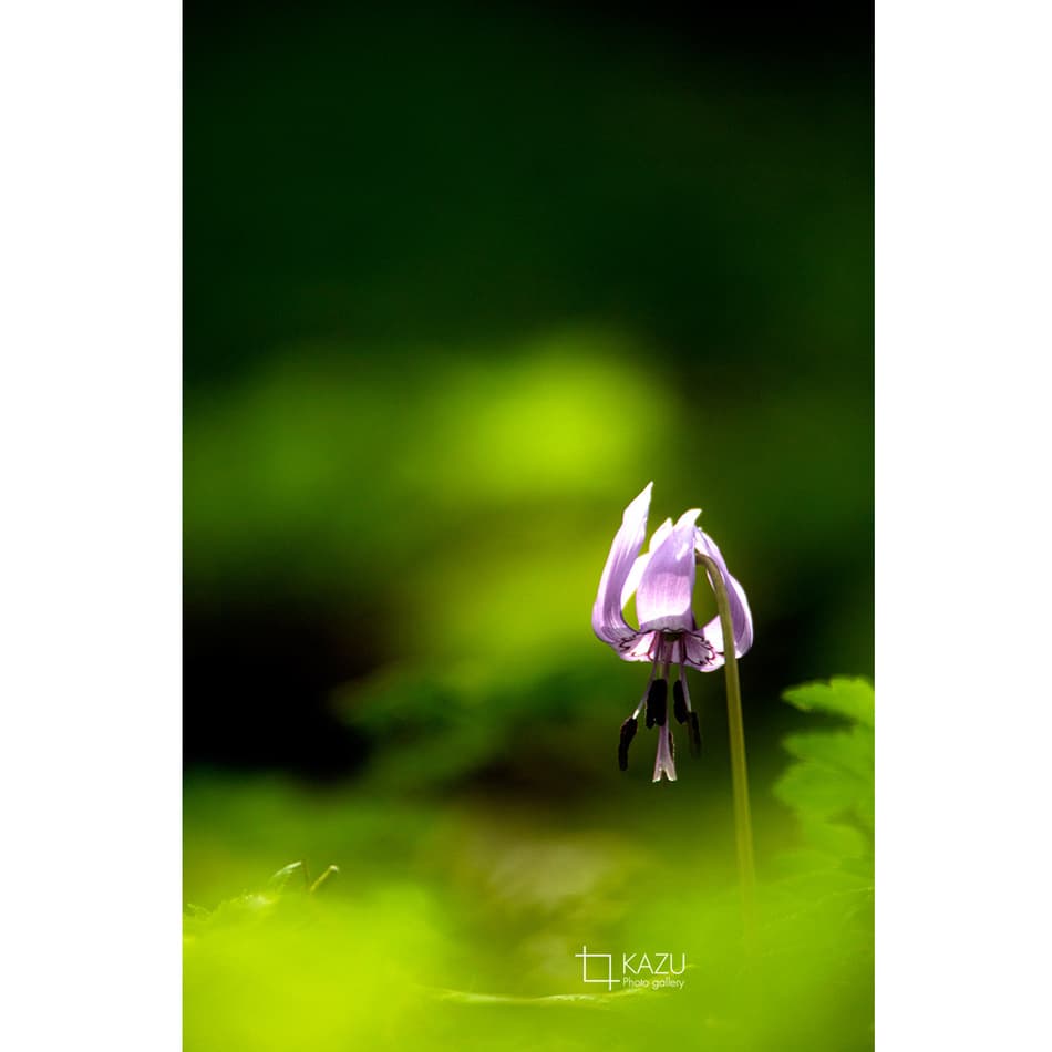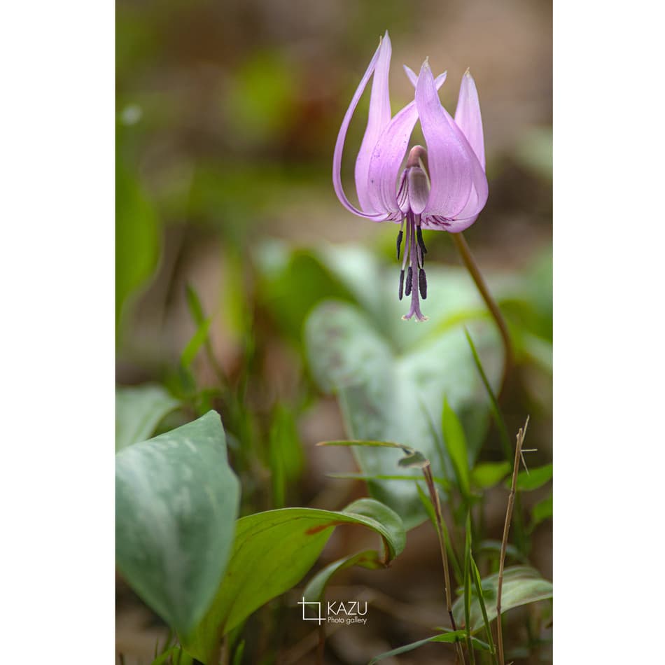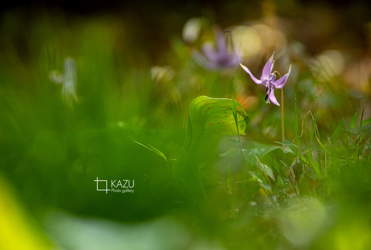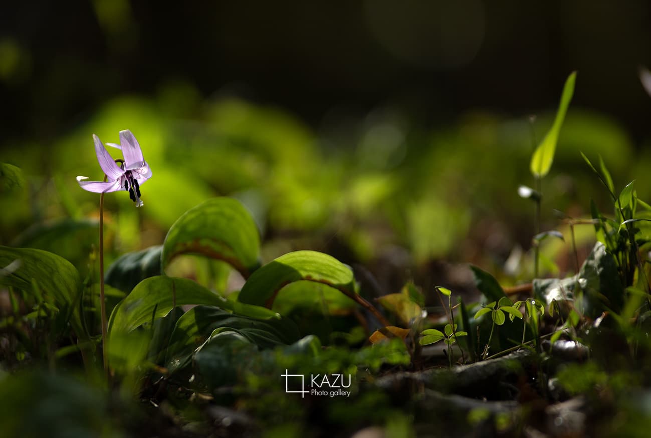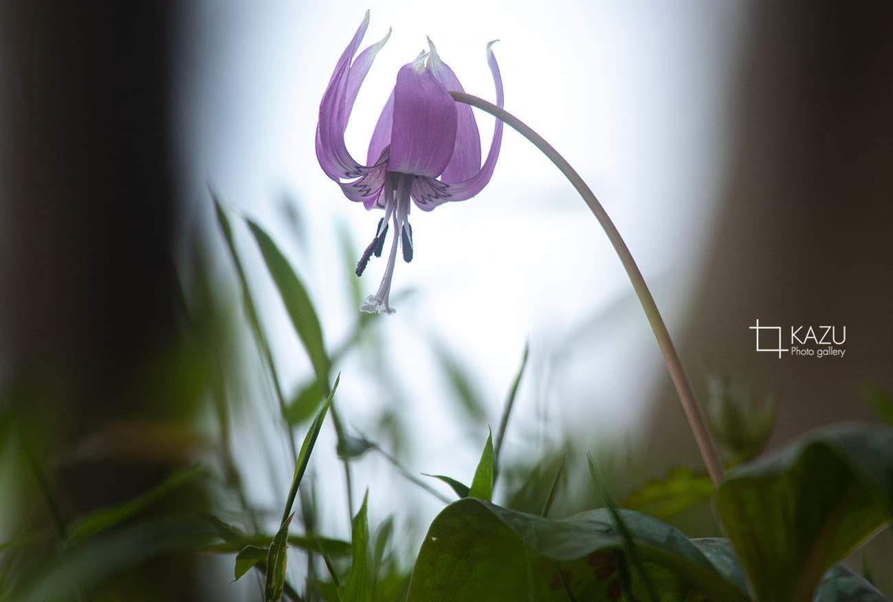 今日もあけぼの山の斜面でカタクリ撮影、手前のちょっとした木の垣根が邪魔で低いアングルから撮るのも場所が制限されるて隙間を狙ってで大変です