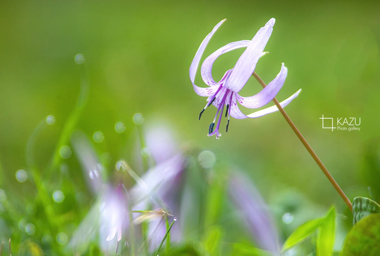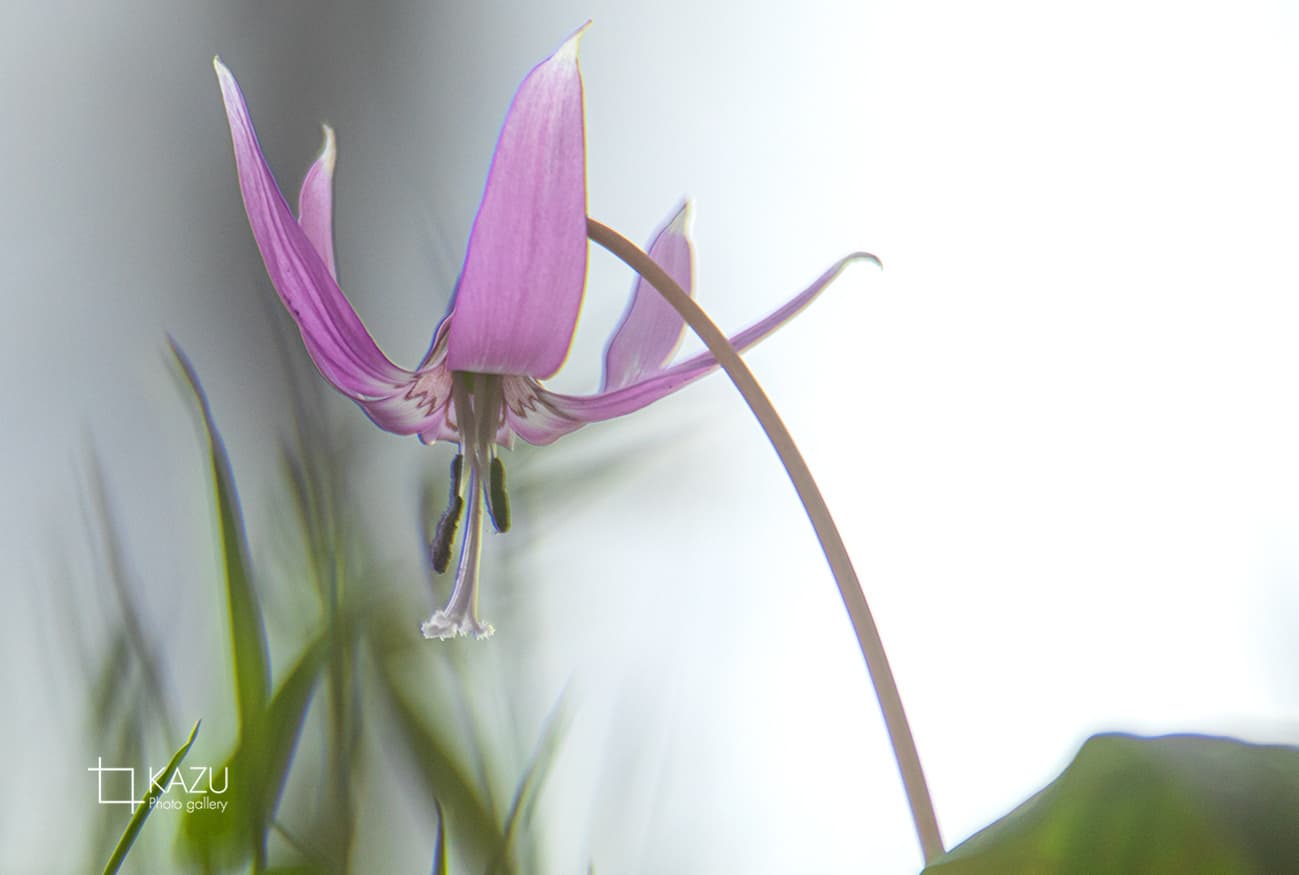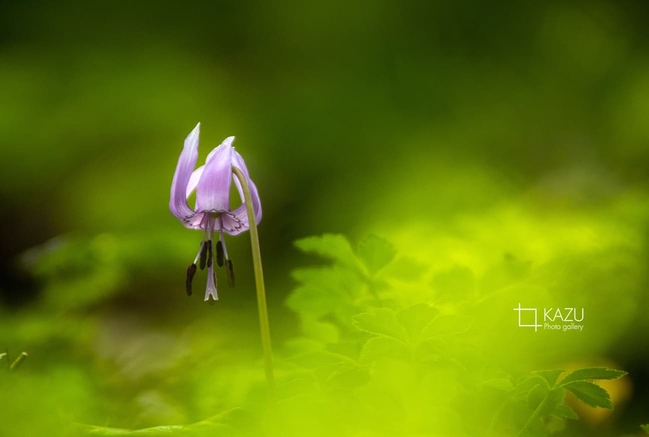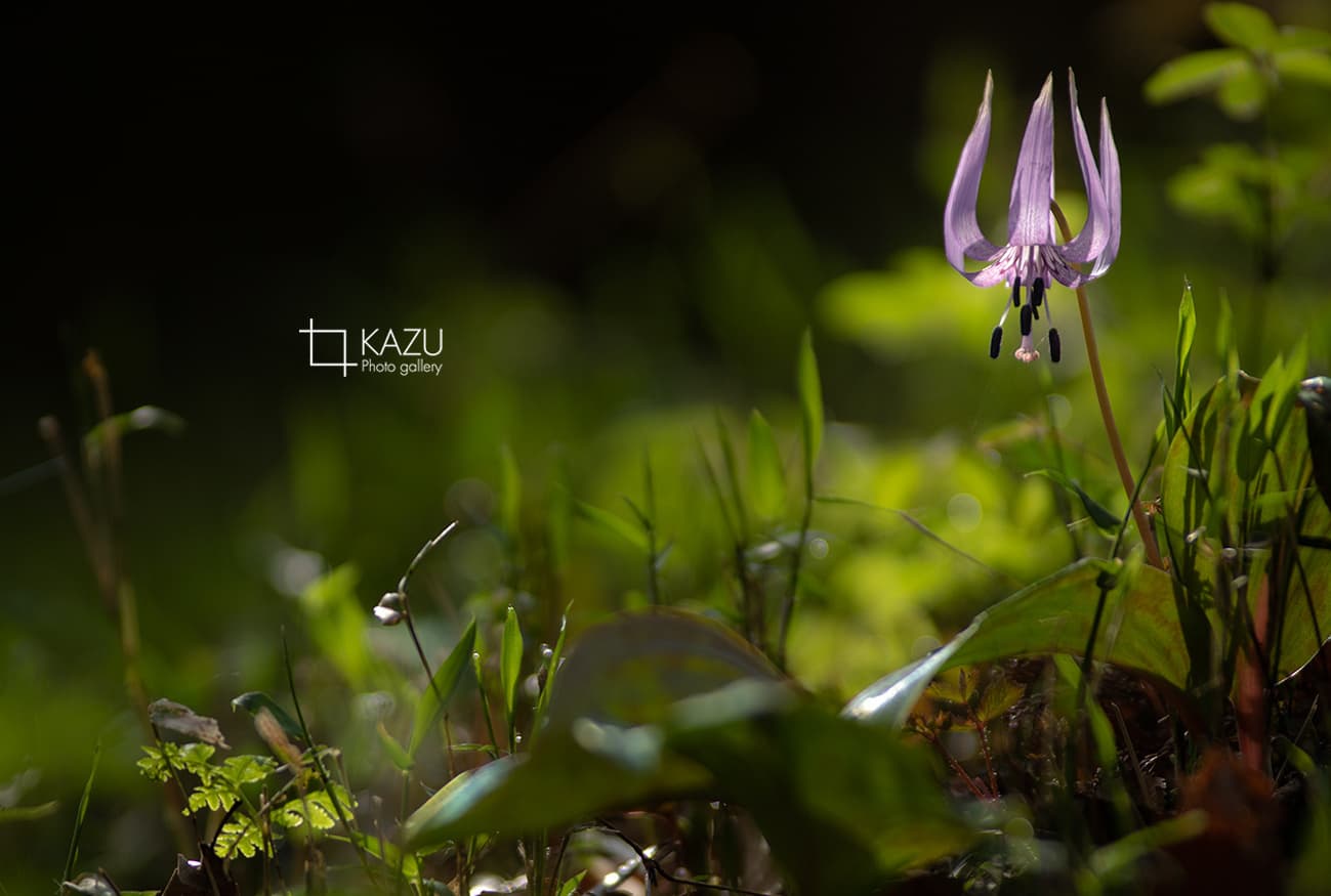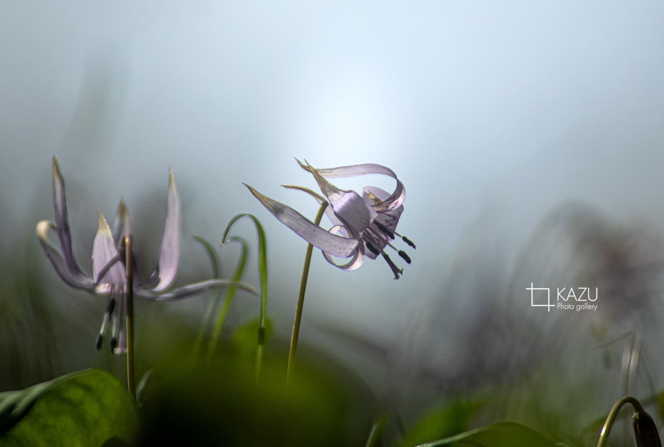 今日もあけぼの山の斜面でカタクリ撮影、手前のちょっとした木の垣根が邪魔で低いアングルから撮るのも場所が制限されるて隙間を狙ってで大変です