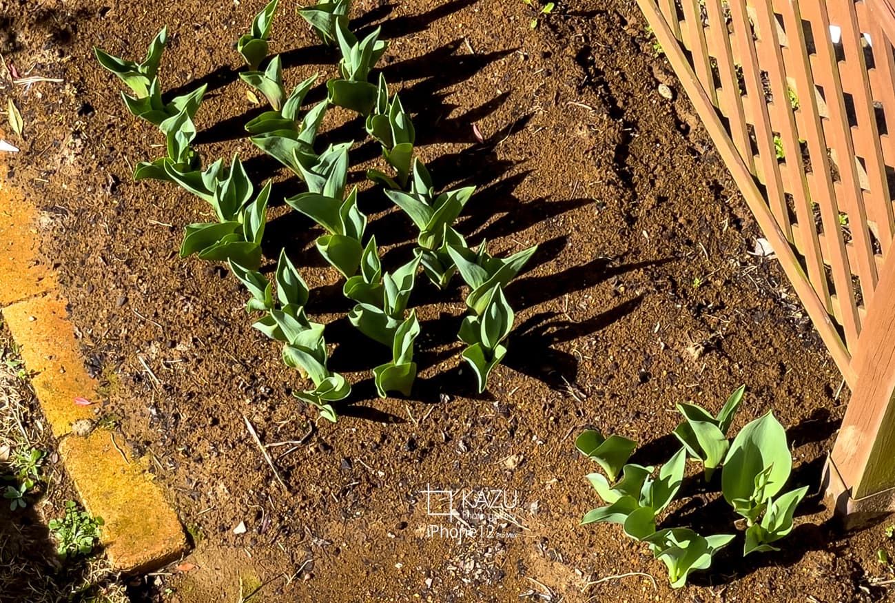 3月です、少し暖かくなってきました 庭のチューリップは土から顔を出し始め日に日に大きくなっています公園の梅も咲き始め花の季節が始まります