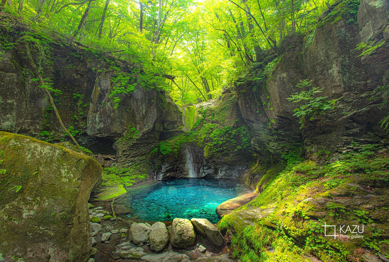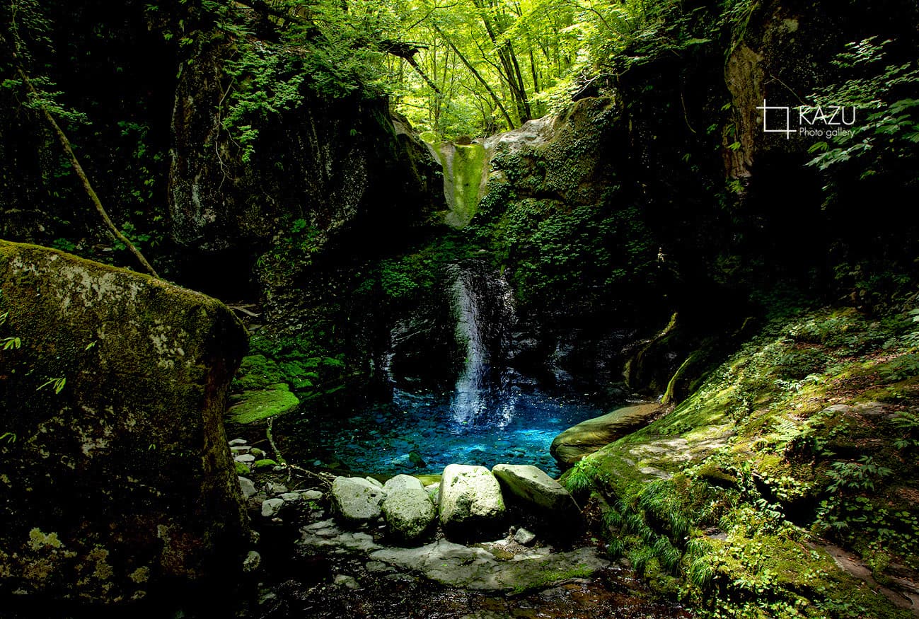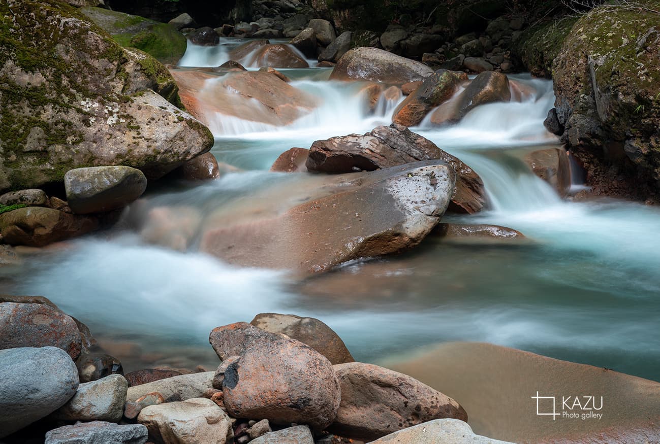 渓流の横に歩道があるので最初の素簾の滝までゆく途中にもすっかんブルーが綺麗な場所何箇所もあります全部寄っていたら時間が足りなくなってしまうので撮りやすい場所で撮影