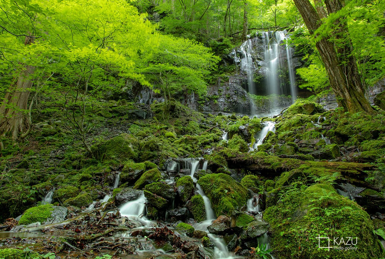 新緑が綺麗、滝ばかり撮っていないでゆっくり雰囲気を味わえば良いのにゆっくりする暇もなく滝に集中もっとゆっくりした方が良いのにね〜わかっているけど滝を前にするとついつい・・・