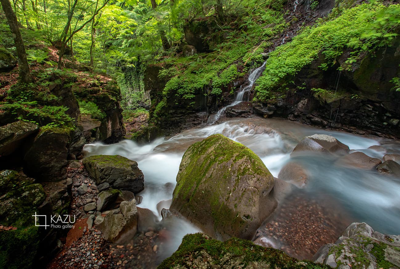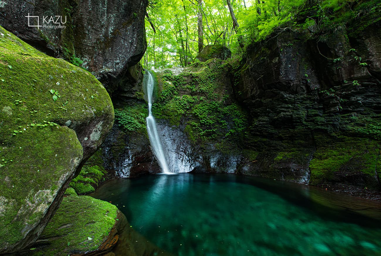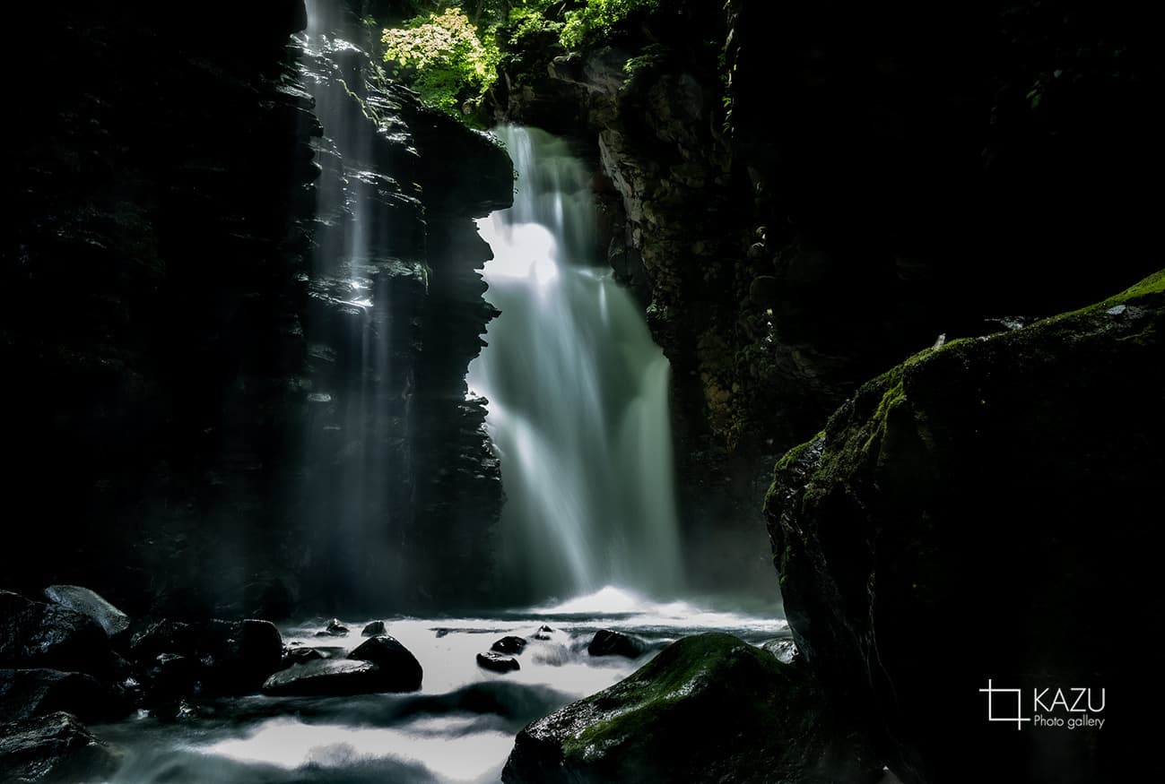 昨日はおしらじの滝&すっかん沢まで一般道路で2時間30分です最初は前回のリベンジおしらじの滝、水が流れていました6時前なので人は誰もいないし良い雰囲気です、自己責任で滝壺に近づいて撮影3〜5mの差なのに見え方は全く違います数年前にここで泳いで2名の方が亡くなったようで近づけなくなったようです、早朝は光が当たらないので水面が綺麗な青には見えなかっので次回は天気が良い日の午後に見に行ってみましょう