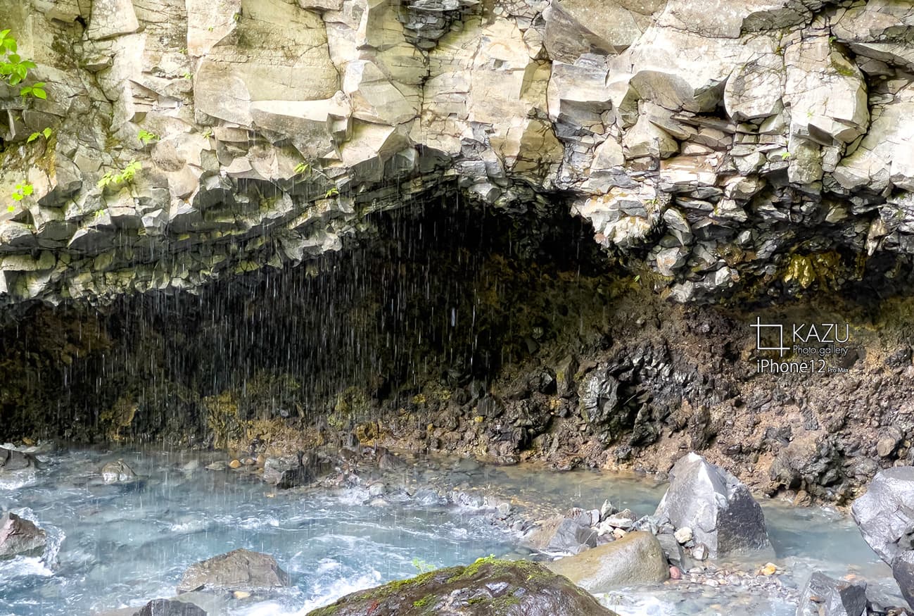おしらじの滝、水が流れていなくても雰囲気がたまらないこれで水が流れていて音がしていたらどんな感じなのだろう見てみたい