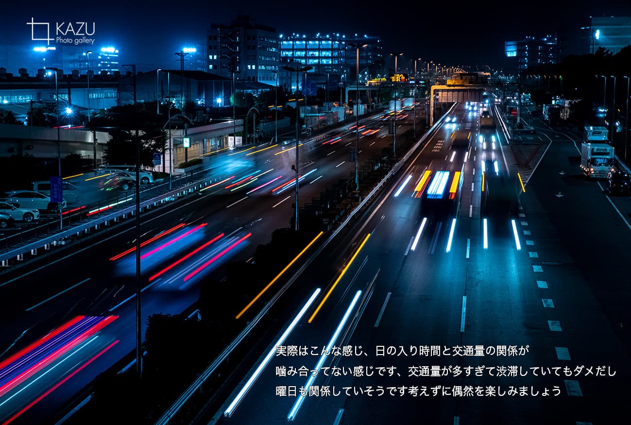 用事で横浜まで帰りに息子と合流して初めての首都高を撮ってみました、路面に反射するヘッドライトの光が綺麗なので色温度を下げそれに先日水に流されたNDフィルターの代替え品として購入したプラスチックのND16(少しブルーがかっています)を購入したのでそれもつけて青白く撮ってみました、だからなんだという感じですがブルーにすると白が強調されているような気がします